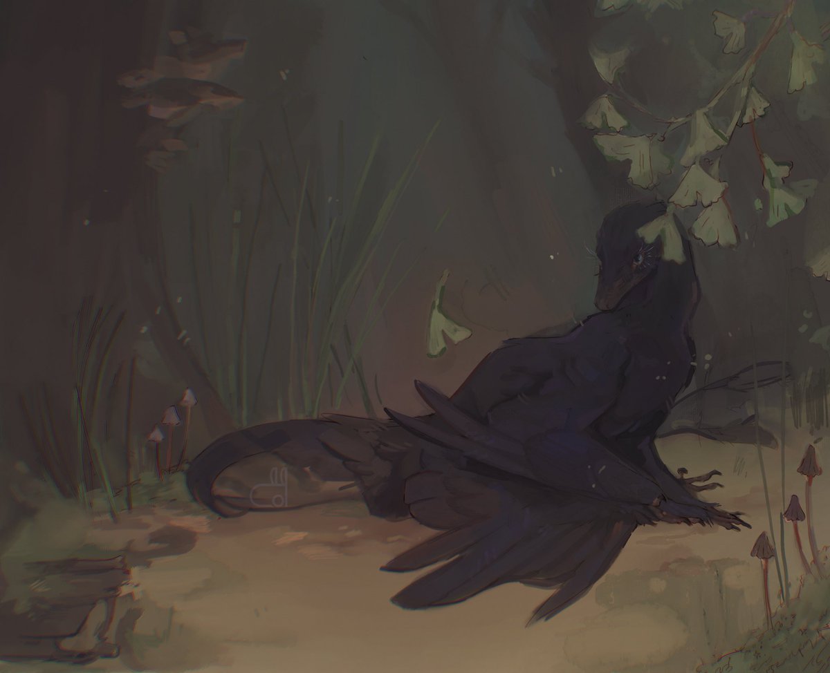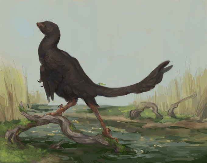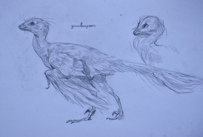 #Archaeopteryx, in that iconic fossil pose. Its sich a fun dinamic pose, i had to try putting flesh on it. Im also playing around with style. :0 #paleoart