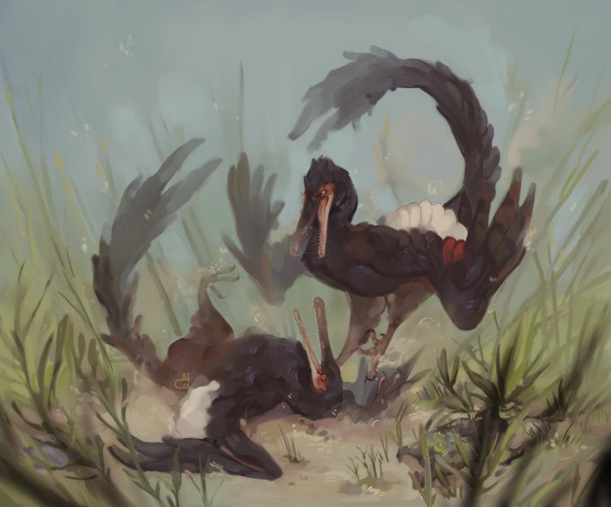 A mama velociraptor cleaning her baby. Since they are raptors, i just cant get the idea of #velociraptor s picking up their babies out of my head. Do i have any evidence for this? Any reasoning? Its cute. #paleoart