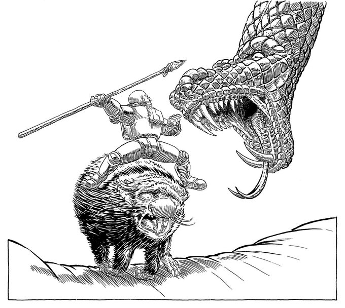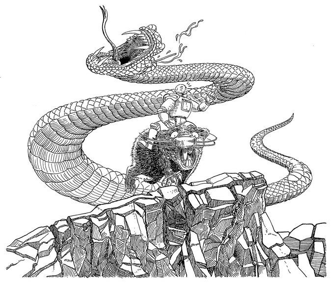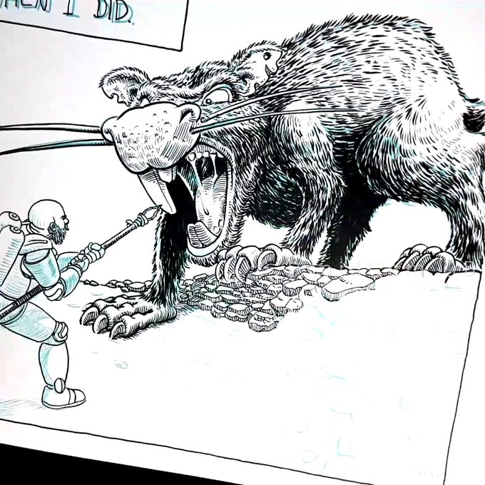 8-TEETH The danger never stops on this land ! How will Yuri and his rat companion escape that snake ? Come watch me ink #inktober2020 on Twitch or Youtube (links in bio) and find out #falcato #inktober #teeth #penandink #spear #comics #scifi #sciencefiction #illustration #snake