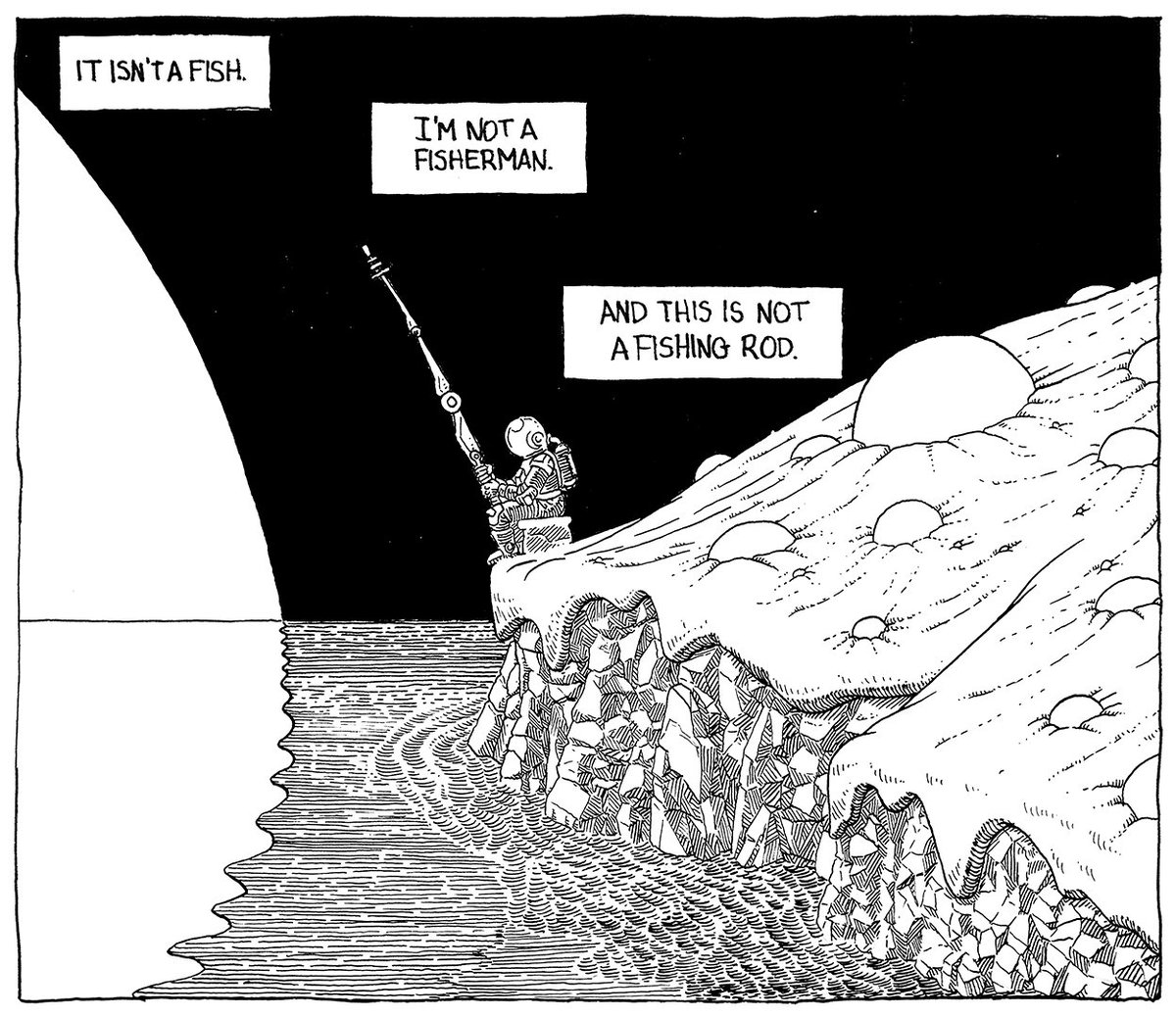 1- FISH Inktober is back, and Yuri is back with it. I decided I'll be continuing the adventures of the space hunter I created last year. Did you read last year's adventure ? It's on an open post on my Patreon. #falcato #inktober #inktober2020 #fish #penandink #scifi #comics