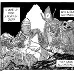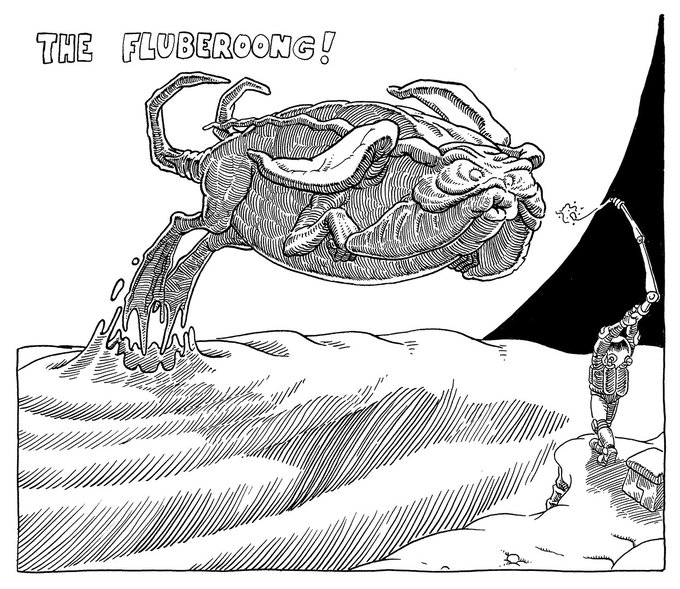 7-FANCY Yuri the giant rat-like creature and won. Still trying to catch up. Come watch me ink the next #inktober2020 word live, on Twitch or Youtube (links in bio) #falcato #inktober #fancy #penandink #spear #comics #scifi #sciencefiction #illustration #giantrat #clouds