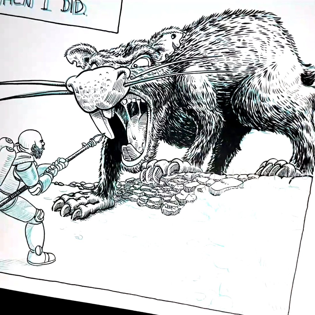 Come watch me finish this #inktober entry. Right now on TwitchTV and Youtube( link in bio). It's almost done. :) #inktober2020 #rodent #penandink #analogart #comics #Scifi #sciencefiction #falcato