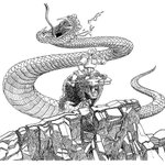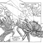 Yes, I know I'm behind, but I don't care, so here's 9-THROW. Yuri and his Rat face some other danger. Come watch me ink #inktober2020 (links in bio) and find out the whole story. #falcato #inktober #teeth #penandink #spear #comics #scifi #sciencefiction #illustration #snake