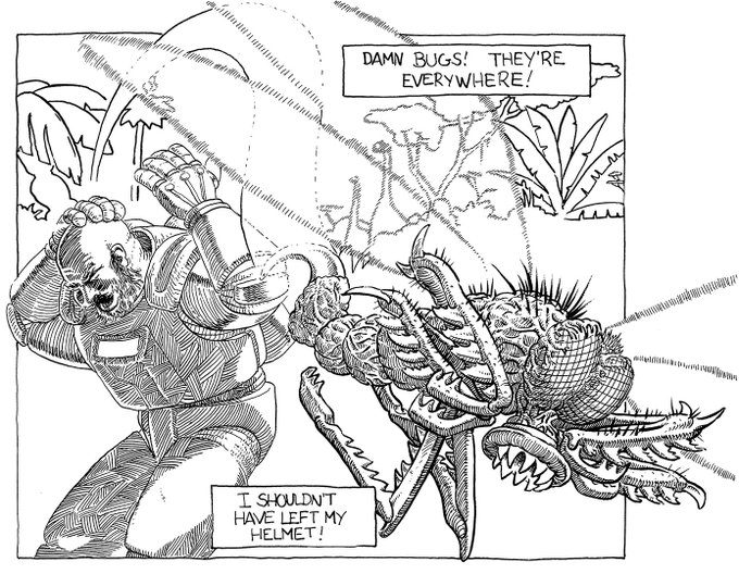 Better late than never. Here's 11- #DISEASE + #DISGUSTING It's the 2nd prompt for #primal I'm doing all #inktober2020 live, daily. (links in bio) @adultswim @genndytartakovsky #falcato #inktober #penandink #mosquito #comics #scifi #sciencefiction #illustration #prehistoric