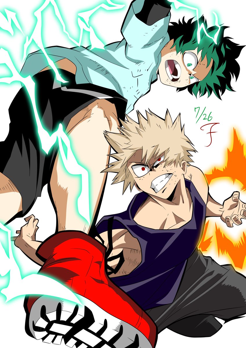 模写完成しました! 今までの中で1番よく出来た! 専門行き始めたのもあって上手くなってる気がする!😁 #イラスト #模写イラスト #僕のヒーローアカデミア #緑谷出久 #爆豪勝己 #イラスト好きな人と繋がりたい #絵垢 #絵師