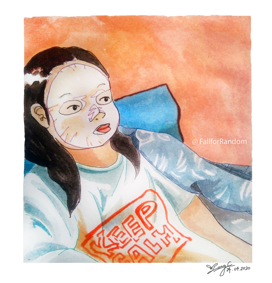 Facial Mask (DAY 23/30) #女の子 #オリジナル #イラスト #水彩画 #illustration #透明水彩 #原創 #女孩 #facialmask #quarantine pixiv.net/artworks/81973…