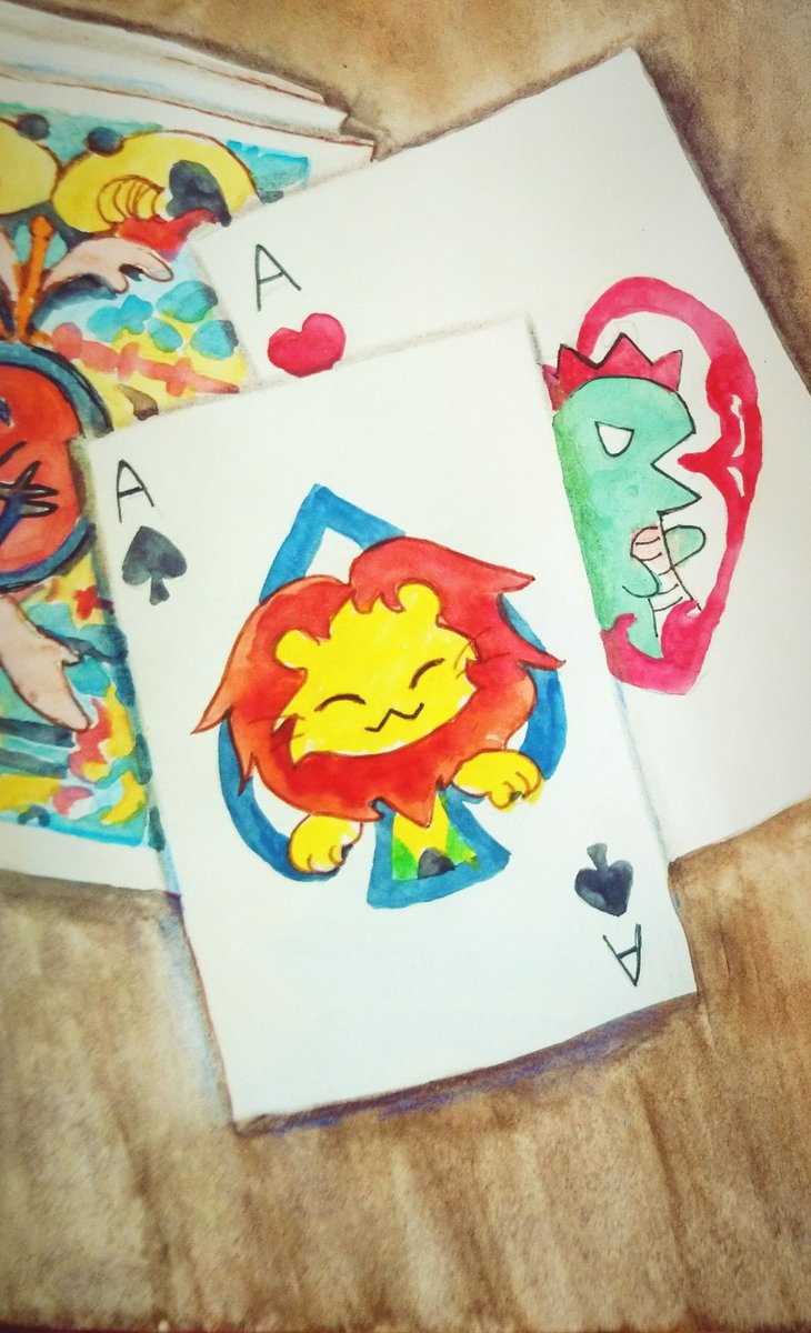 #inktober2020 Day22 #playingcards . . See more illustrations and art at my instagram: @fallforrandom . Commission ON! at fiverr.com/fallforrandom/ . . #animaldrawing #doodle #object #dinosaur #watercolour #水彩 #drawings #落書き #イラスト #lion #illustration #cuteillustration