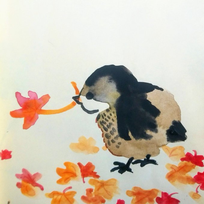#inktober2020 Day24 #fallcolor . . See more illustrations and art at my instagram: @fallforrandom . Commission ON! at fiverr.com/fallforrandom/ . . #animaldrawing #doodle #object #autumn #watercolour #水彩 #drawings #落書き #イラスト #bird #illustration #cuteillustration