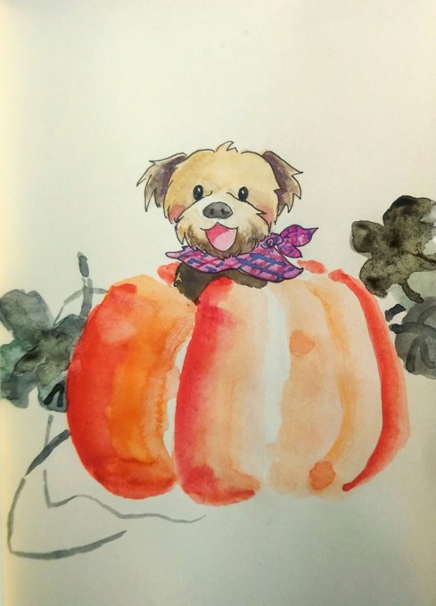 #inktober2020 Day25 #pumkin . . See more illustrations and art at my instagram: @fallforrandom . Commission ON! at fiverr.com/fallforrandom/ . . #animaldrawing #doodle #dog #autumn #watercolour #水彩 #drawings #落書き #イラスト #chinesestyle #illustration #cuteillustration