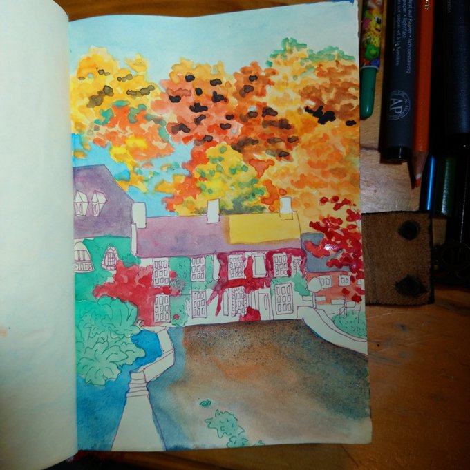 #inktober2020 Just something in progress! . . See more illustrations and art at my instagram: @fallforrandom . Commission ON! at fiverr.com/fallforrandom/ . . #Cotswold #art #doodle #bibury #autumn #watercolour #水彩 #drawings #落書き #イラスト #scenery #illustration #fallcolors
