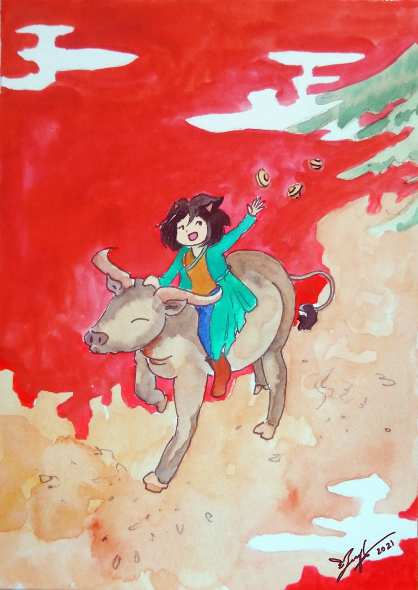 牛年賀年卡 / Happy Chinese New Year of Ox (Cow) Speed Paint: youtube.com/watch?v=5xhvdm… Tools: Watercolour #原創 #透明水彩 #イラスト #水彩画 #illustration #LunarNewYear #LunarFestival2021 #繪畫 #女の子 #yearoftheox #yearoftheox #ChineseNewYear #農曆新年 #落書き #手繪