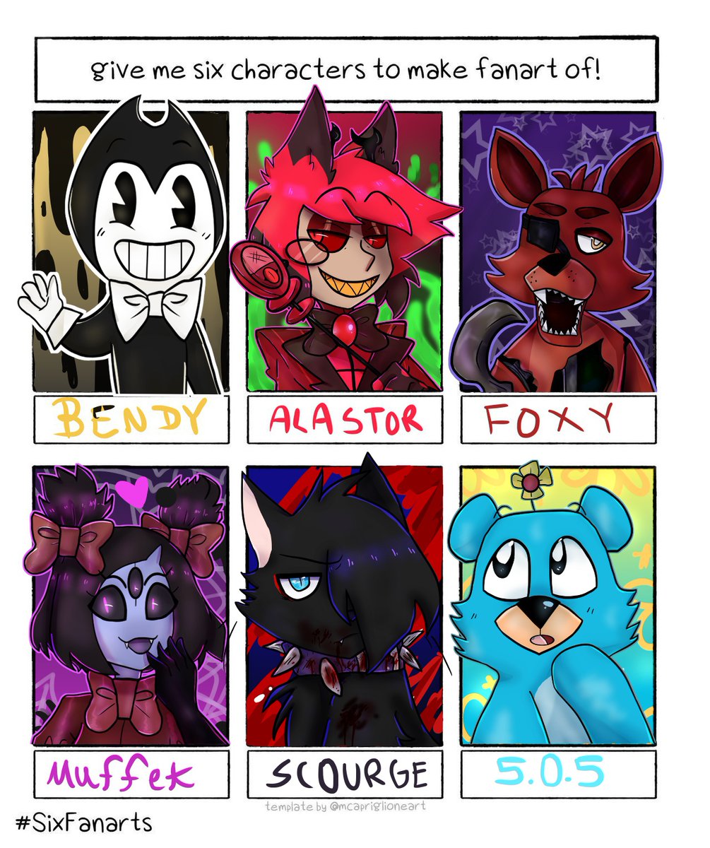 I committed to this! <3 I had fun with this, I plan on doing more when I can :> #SixFanarts #HazbinHotel #Bendy_and_the_ink_machine #FNAF #warriorcats #undertale #villainous #fanart #myart #digitalart