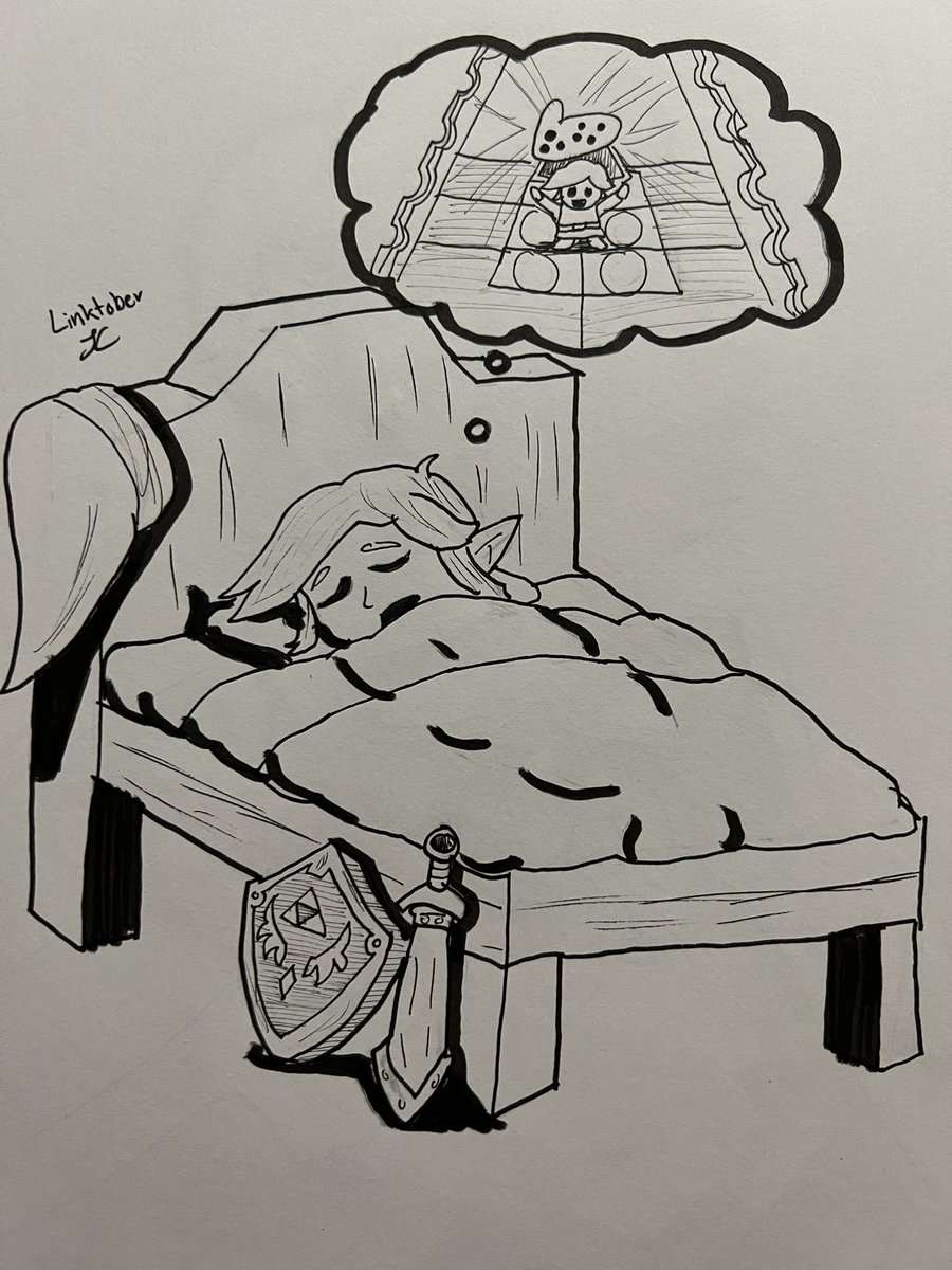Linktober Day 24: Dream. What an interesting way on how to obtain a key item. #linktober #linktober2022 #inktober #zelda #legendofzelda #nintendo #art #artwork #drawing
