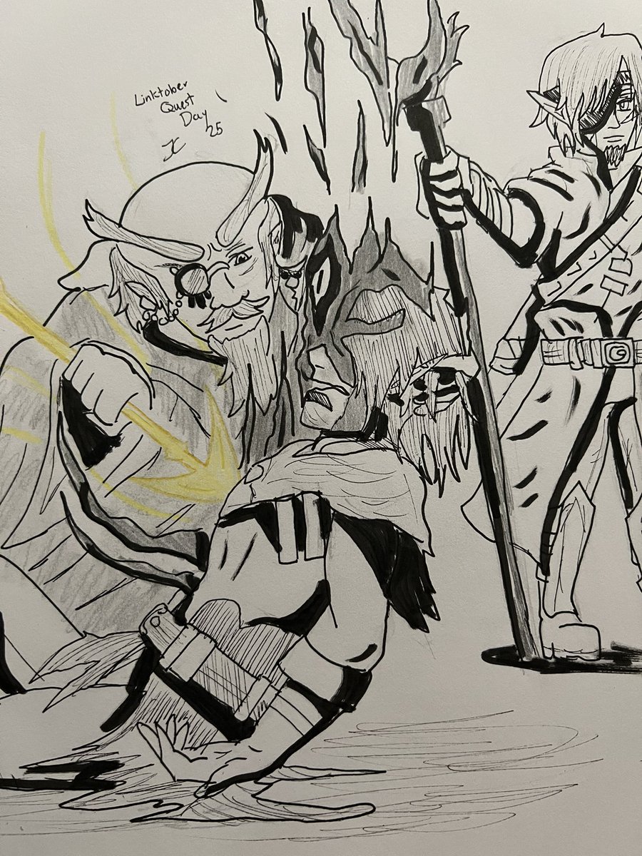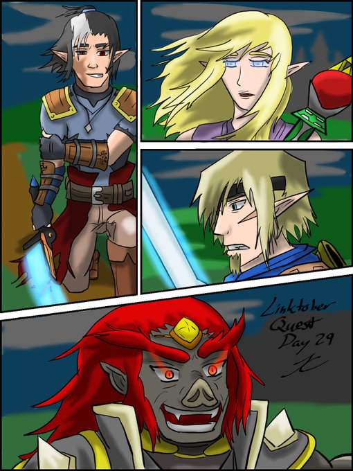 Linktober Quest Day 29. "Is this the best Hyrule has to stop me?!" Ganon's laugh stings the heroes, but it wont slow them down for bringing peace. #linktober #linktober2022 #linktoberquest #linktoberquest2022 #inktober #zelda #legendofzelda #nintendo #art #artwork #drawing