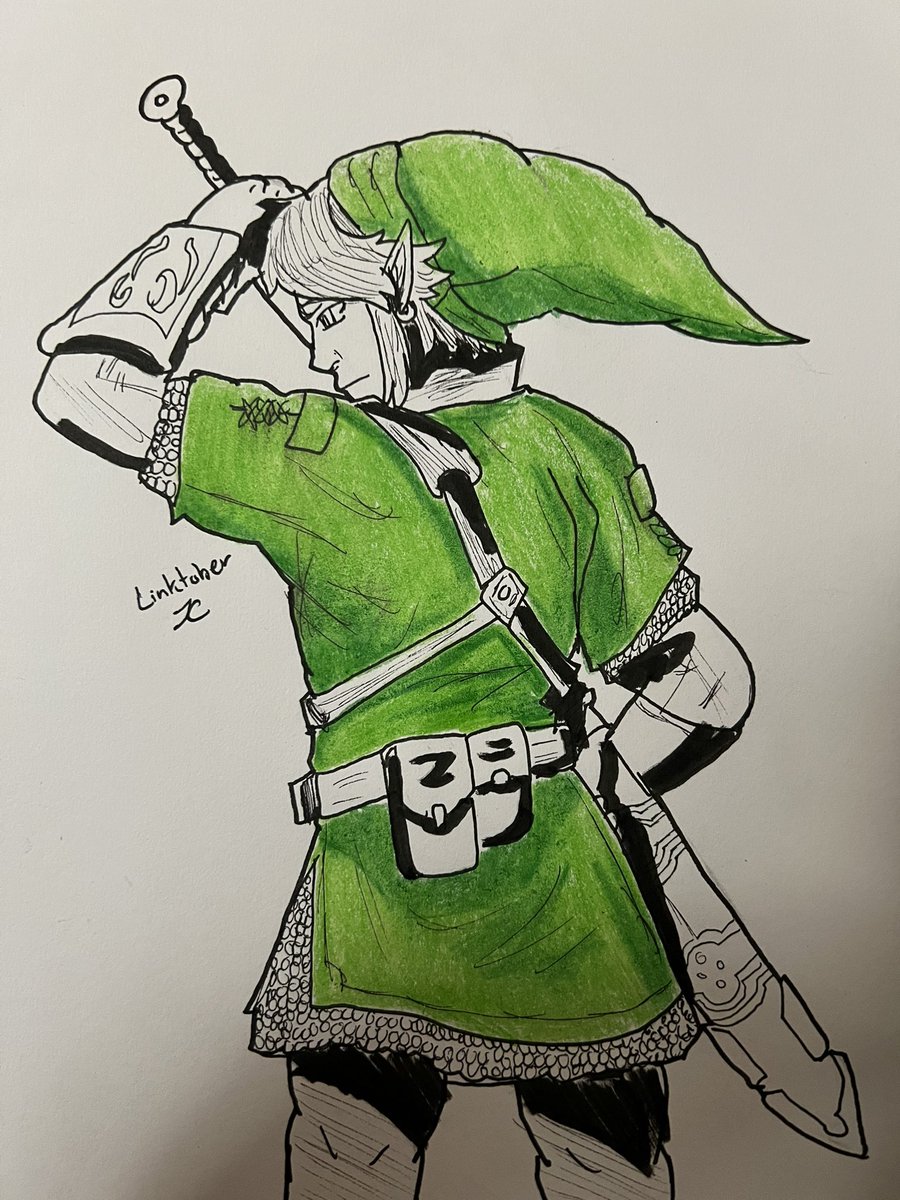 Linktober Day 17: Link. With his sword in hand, Link is ready to take on this quest to save Hyrule. #linktober #linktober2022 #inktober #zelda #legendofzelda #nintendo #art #artwork #drawing