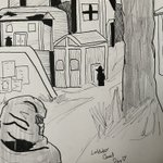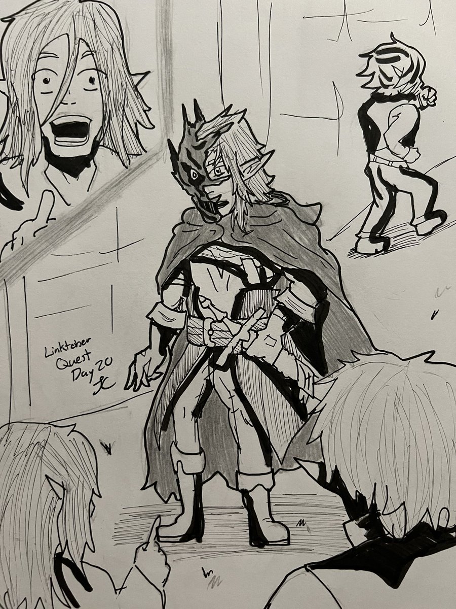 Linktober Quest Day 20. A scream rings in the merc’s ear and turns to see people in shock by his appearance. One yells that they are going for help. #linktober #linktober2022 #linktoberquest #linktoberquest2022 #inktober #zelda #legendofzelda #nintendo #art #artwork #drawing