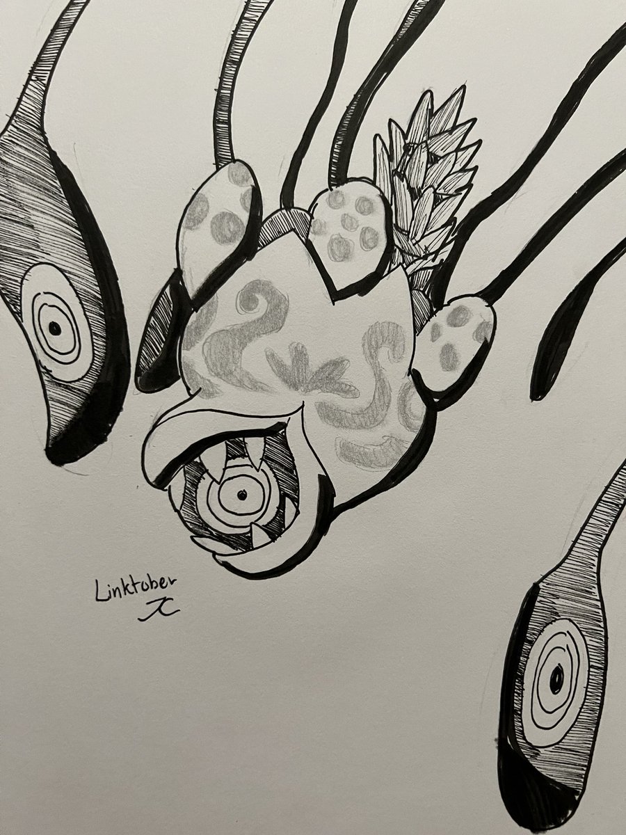 Linktober Day 19: Boss. The ocean king is sealed by this Life Force stealing creature known as Bellum. #linktober #linktober2022 #inktober #zelda #legendofzelda #nintendo #art #artwork #drawing