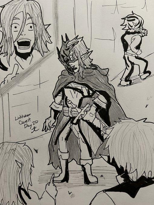 Linktober Day 22: NPC. What if Makar got into cosplaying as his fellow cast members. Couldn’t decide on what NPC to choose so I combined two of them. What would be his catchphrase? #linktober #linktober2022 #inktober #zelda #legendofzelda #nintendo #art #artwork #drawing