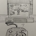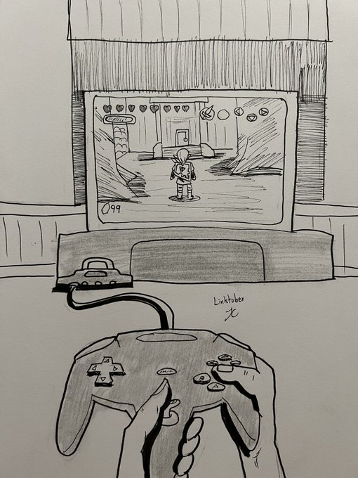 Linktober Day 21: From your first LOZ game. Sitting in front of the tv and the n64 controller in hand. Making it to one of my fav temples in OoT was the best for young me. #linktober #linktober2022 #inktober #zelda #legendofzelda #nintendo #art #artwork #drawing