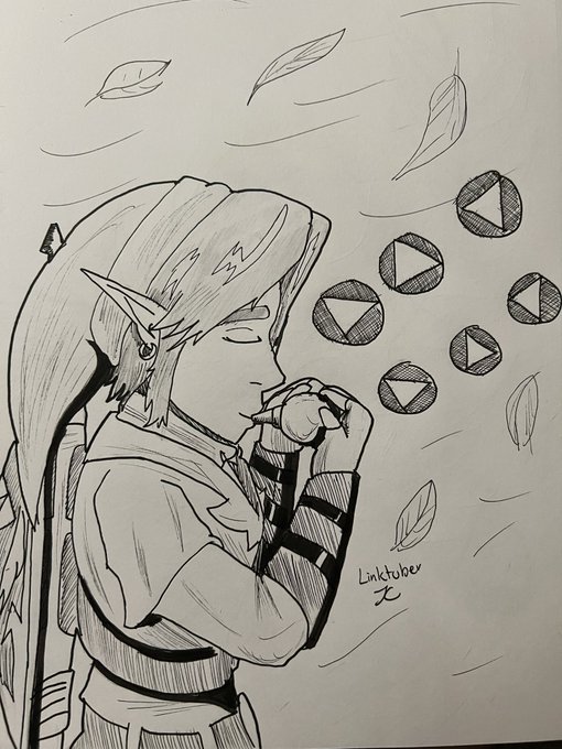 Linktober Day 30: Music. A familiar tune to reconnect to his childhood home. #linktober #linktober2022 #inktober #zelda #legendofzelda #nintendo #art #artwork #drawing