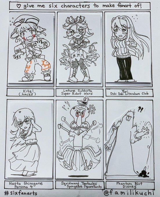 FINALLY done #sixfanarts Chibi ink version, Twitter edition. Sorry to OCD ppl, no ruler free hand #traditionalart 😅 I miss Photoshop 😂 Much thanks to @AceStar1642DX @ArthurS22925756 @Solarn3 @GrissMarkon @Dj__hazardous @MalcolmRambert for making this possible!