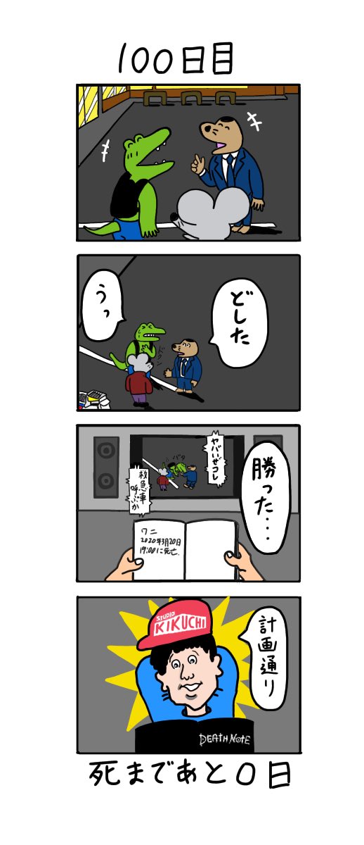 @yuukikikuchi 「100日後に死ぬワニ」 100日目