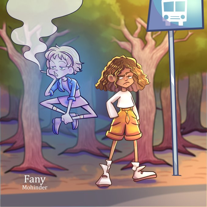 Continuando con la temática de octubre hoy les comparto este dibujo de una niña que puede ver fantasmas, a la que un alma rebelde sigue a todos lados. El dibujo es del 2019. #digitalart #smallartist #spookyseason #originalcharacter