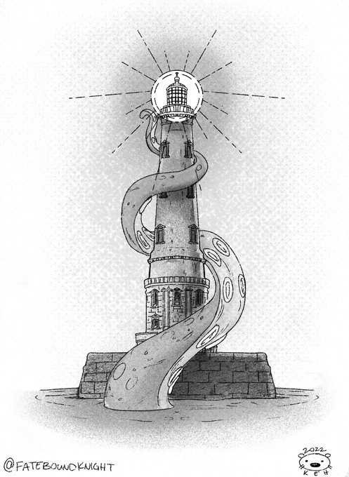 My first #OurFlagMeansDeath fanart and it’s a tattoo concept. The Lighthouse and the Kraken, holding my heart forever ☠️🖤 #OFMDfanart
