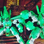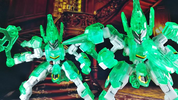 雑誌付録のアニマギア、シュバルツフォース(クリアグリーンver)を組み立てからの合体! ユニコーンライギアス! 通常弾も良きでしたが、クリアになるとガラッと雰囲気変わるね 合体すると大きさも相まってカッコいい✨ #アニマギア #夜のフィギュア撮影会 テーマ「合体」