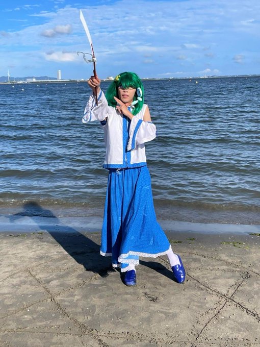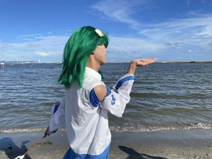 #ラグコス2022 #ラグコス 海撮影来てます‼️少し濡れたけど水が似合う早苗だからいいかな~ さなえ「青空もすごく綺麗だからって無茶しないでくださいね⭐️」 早苗&ふもさなえ→私 📷️→祗園さん(@Shin_Gifu_3511)