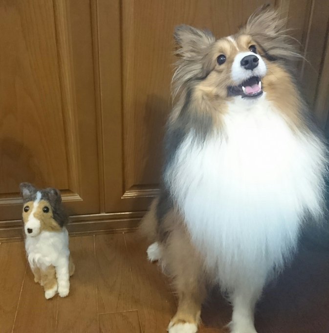 3 114 もものすけ様 @konnbudasi0713 より、可愛いカイル君が届きました~! めっちゃ可愛い❤そして、そっくりでした❗ 大切な宝物が増えて、最高でーす! #シェルティ #羊毛フェルト 19/04/18 22:20