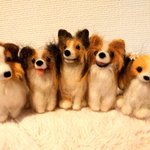 skpk @Zaurus86 様に作って頂いた空良、咲良、カイル君です😆🎵🎵 もう、と~っても可愛いです❤️ 3枚目は、私が作ったのと一緒に並べてみました❗ とても嬉しいな🎵 ありがとうございました😊 #羊毛フェルト #パピヨン #シェルティ