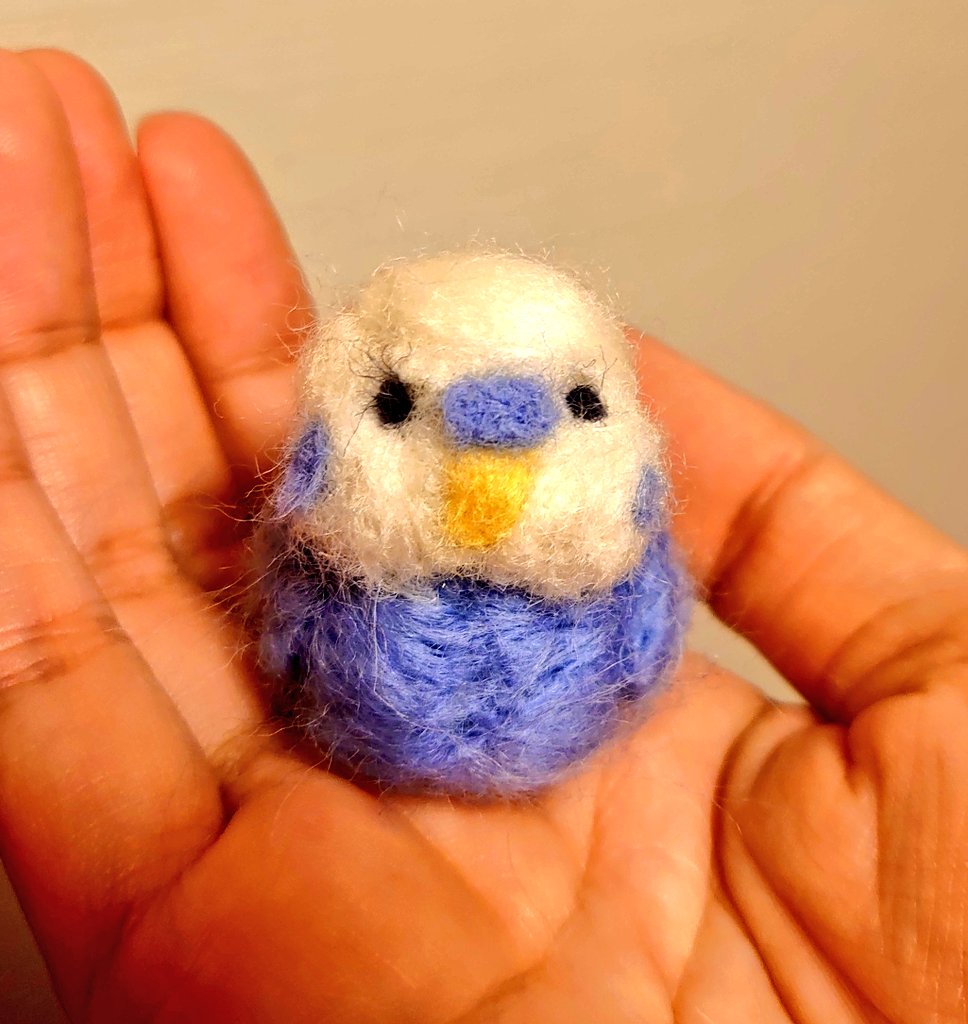 見学が多すぎてビビる新人のスカイちゃん🎵 無性に作りたくて1時間で作った羊毛フェルト。自己流は駄目だね~‼️ #セキセイインコ #コザクラインコ #羊毛フェルト