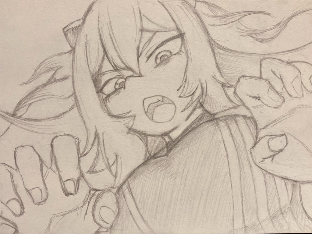 かわ余🎊 #百鬼絵巻 #アナログイラスト #ホロライブ #イラスト練習中
