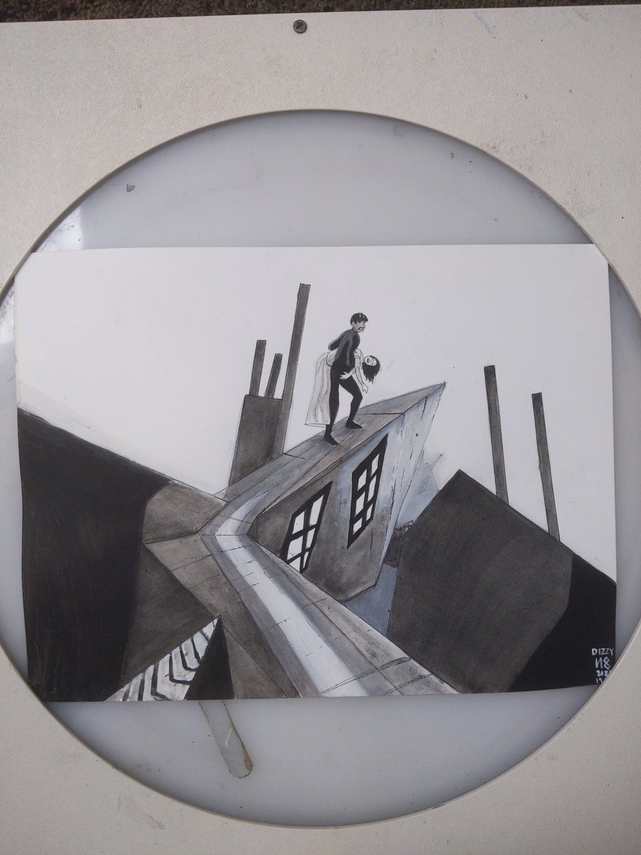 Day 19 #Dizzy - I went with Fritz Lang's The Cabinet of Dr. Caligari. It's a trip. The set design will mess with your head #germanexpressionist #expressionist #silentfilm #fritzlang #expressionism #inktober #horror #inktober2020 #silenthorror #thecabinetofdrcaligari #spooky