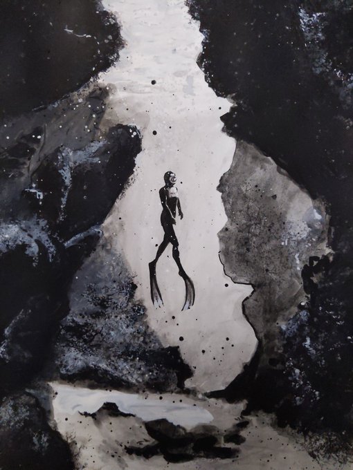 Day 20 #Coral - I couldn't think of a film. I started with a sketch of Jacques Cousteau. I did another of Muhammad Ali boxing underwater, "The quarrel in the coral". I went literal #inktober #inktober2020 #scuba #scubadiving #scubadiver #ink #art #underwater #float #inktoberday20