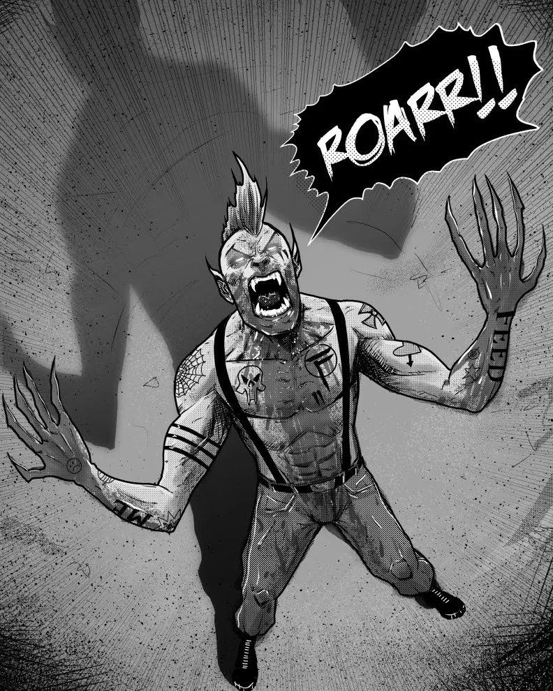 Inktober Day 19 Ponytail - I love the spooky season, so I'm re-working a story and building out new heroes. Let's kick some vampire ass. #inktober #inktober2022 #inktober2022ponytail #vampires #slayers #badass #badassmofo #desertmoon #action #horror #spookyseason #dracula
