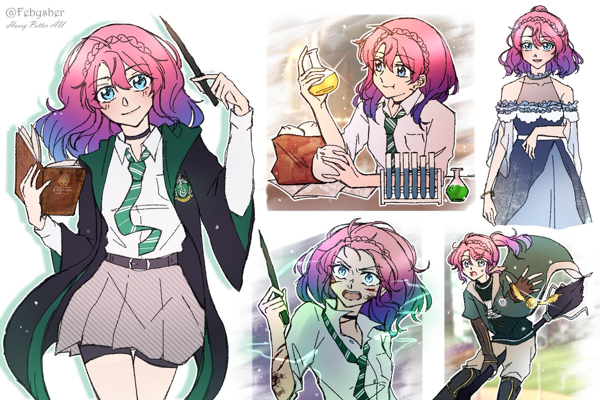 ― Hogwarts OC ― Finally I drew the character reference and yes I'm Slytherin based from my Wizarding World Acc, also my patronus is Dapple Grey Stallion (*´꒳`*) Nice to meet y'all Potterhead 🥺✨ #OC #rkgk #Febysher #HarryPotter #Hogwarts #Slytherin