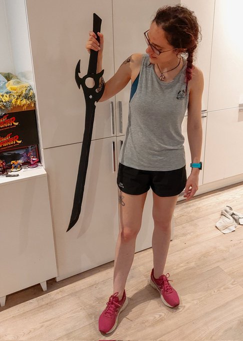 And to finish the weekend, the base of Mistsplitter is done! With the help of @justplainrewd sanding, because I might be a strong and independent woman but I'm scared of power tools. Pattern by NATAcosplaycraft (Etsy) #GenshinImpact #GenshinImpactCosplay
