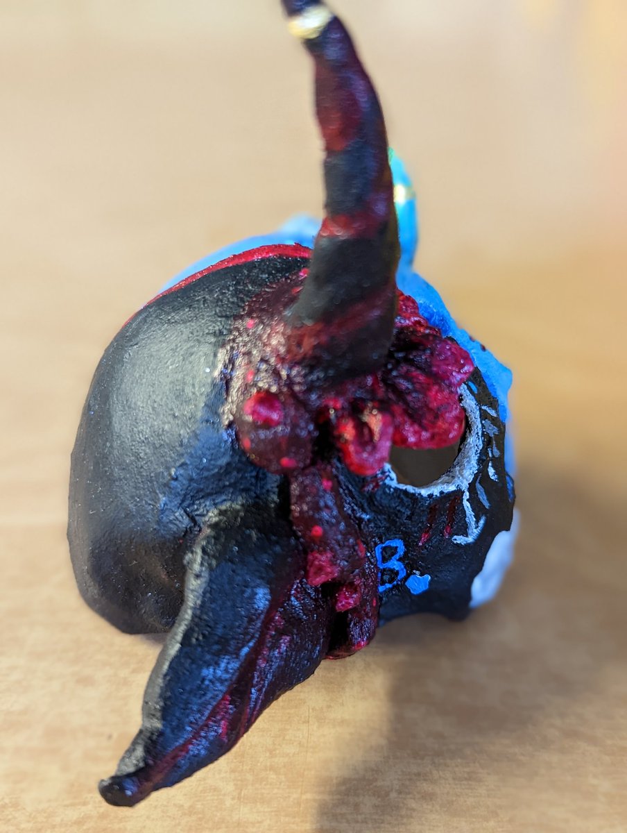 A clay skull I made and painted inspired by happyduo egglore because I can🧑🎤 Retweets always appreciated:) #happyduo #happytwt #badboyhalofanart #badboyhalo #SkeppyFanArt #skeppy