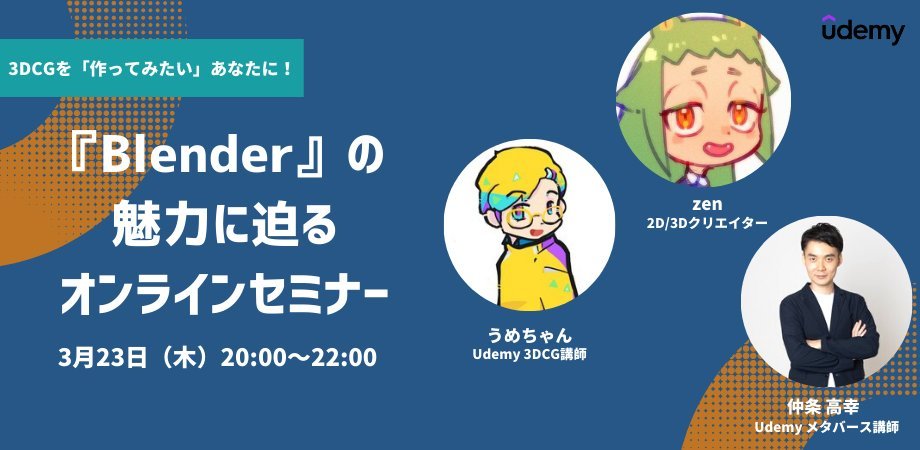 📢お知らせ Udemyさんのウェビナーに登壇させていただきます! ほんとに気軽に「ものづくり楽しいよね〜」というお話をしたいと思っています。 モデリングこれからやってみたい方、ぜひ〜! ⏰3/23(木)20~22時(私は2部から登壇です) 🎫無料 🔗labandudemy0323.peatix.com ☑#UdemyでBlender #PR