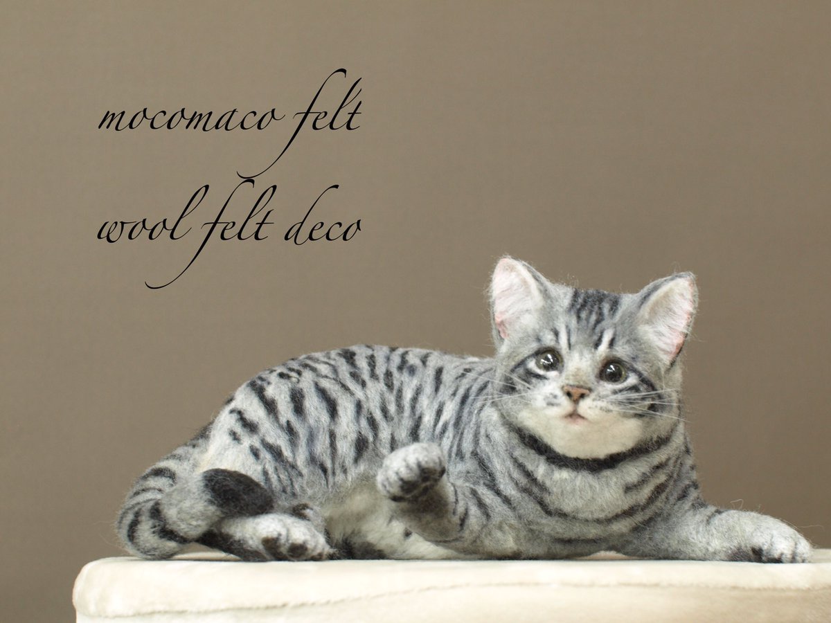 久しぶりに羊毛フェルトのサバトラ猫を作ってみました😆モデルがいなくて想像で作ったので凄く難しくて大変でした #羊毛フェルト #ねこ #猫