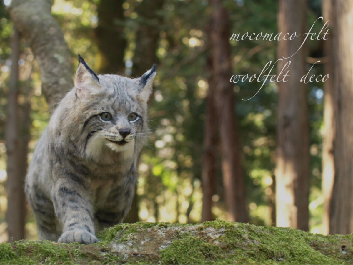 羊毛フェルトでボブキャットを作ってみました😆山猫らしく山で撮影😆#羊毛フェルト #羊毛 #ハンドメイド #山猫 #ヤマネコ #猫 #ねこ #cat #ボブキャット