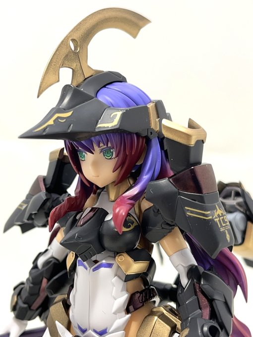 ドゥルガーⅠ完成しました~今回は普段あまりやらない黒を軸に据えて黒騎士風にしました、特に気合を入れたのは塗装したのはお腹周りとお尻回りの陰影表現でセクシーさと元気な感じを出せたかな?あとは金のマスキングが大変だったけうまくいったかな?少し続きます #フレームアームズ・ガール