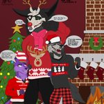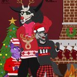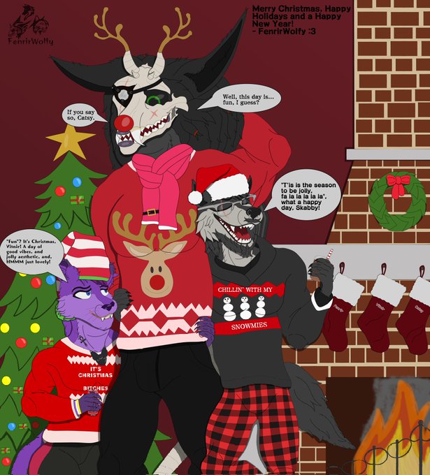 Merry Christmas, guys! Have my three fellas enjoying the season to be jolly! #furry #furryfandom #furryartist #furryartwork #furryart #drawing #digitalart #DigitalArtist #digitaldrawing #Christmas #wolf #alien #cat #skulldog #nygardian