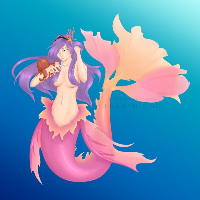 Digging out more older art for #mermay This was one of my 1st mermaids. Figured I'd include her original version here as well 🧜♀️ deviantart.com/feraldingo #mermay2021 #art #ArtistOnTwitter #Mermaid #digitalart