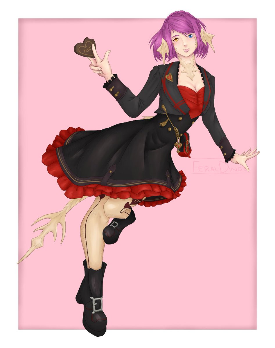 My little WoL in the Valentione Emissary's Glam (soot black dye) Happy Valentione's Day! 💗 #FFXIVART #FFXIV #FF14 #FinalFantasy #FinalFantasyXIV #art #characterart #ArtistOnTwitter #ValentinesDay