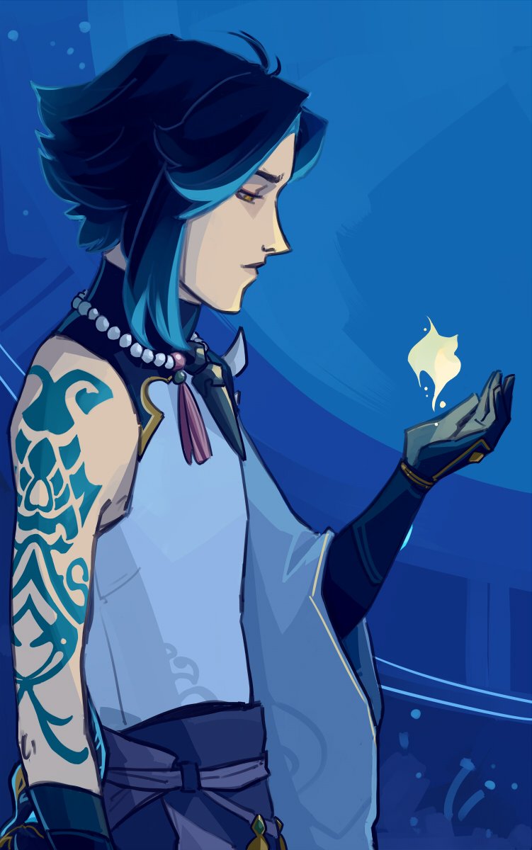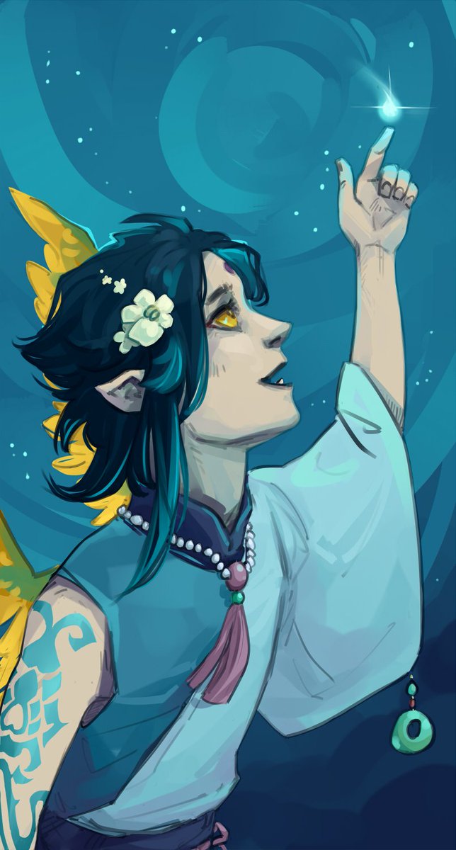 У меня тут есть маленький Сяо, который ловит звезды и которого еще не поймали самого #Genshinlmpact #genshinimpactfanart #xiao