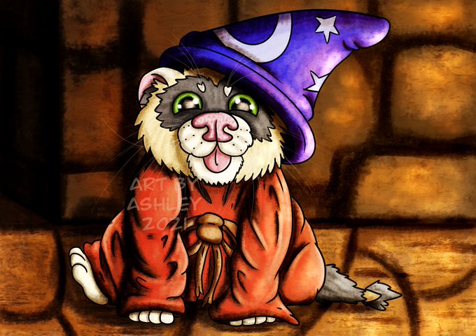 Meeko dressed as Mickey Mouse in Fantasia. ;) #fantasia #ferrets #Disney #disneyart #ferretart #fanart #digitalart #clipstudiopaint #meeko #cosplay #disneycosplay