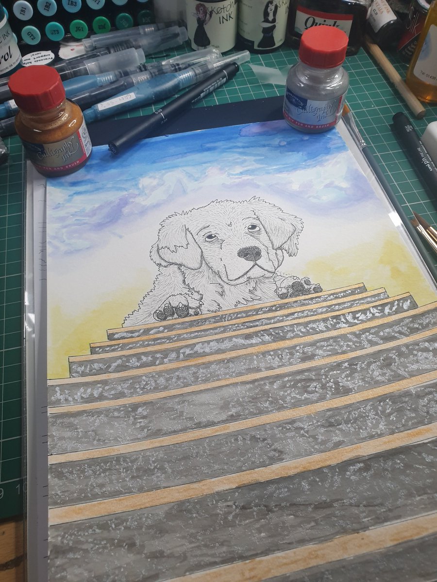 Inktober day 3 - Vessel This piece holds a bit of meaning behind it A wise friend once told me "Your body is just a vessel for the soul, you would discard an old car when it's old and unusable, just as your soul does with your body." #inktober #inktober2021 #dog #goldenretiever